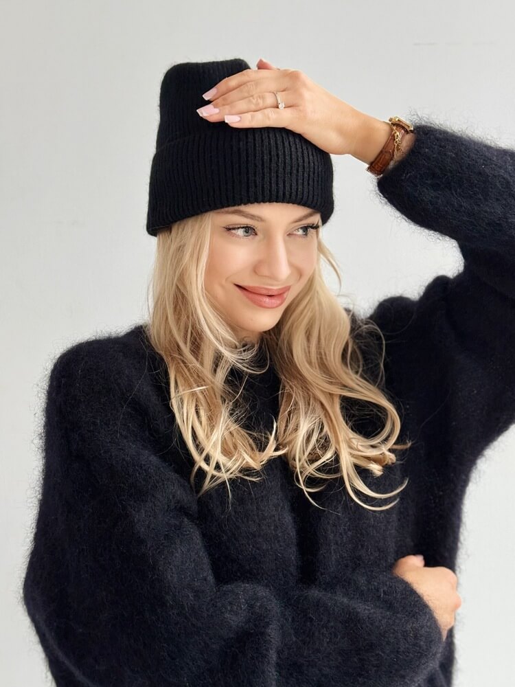 Czapka beanie z 20% domieszką angory i wiskozą. Czapka jest baardzo ciepła.