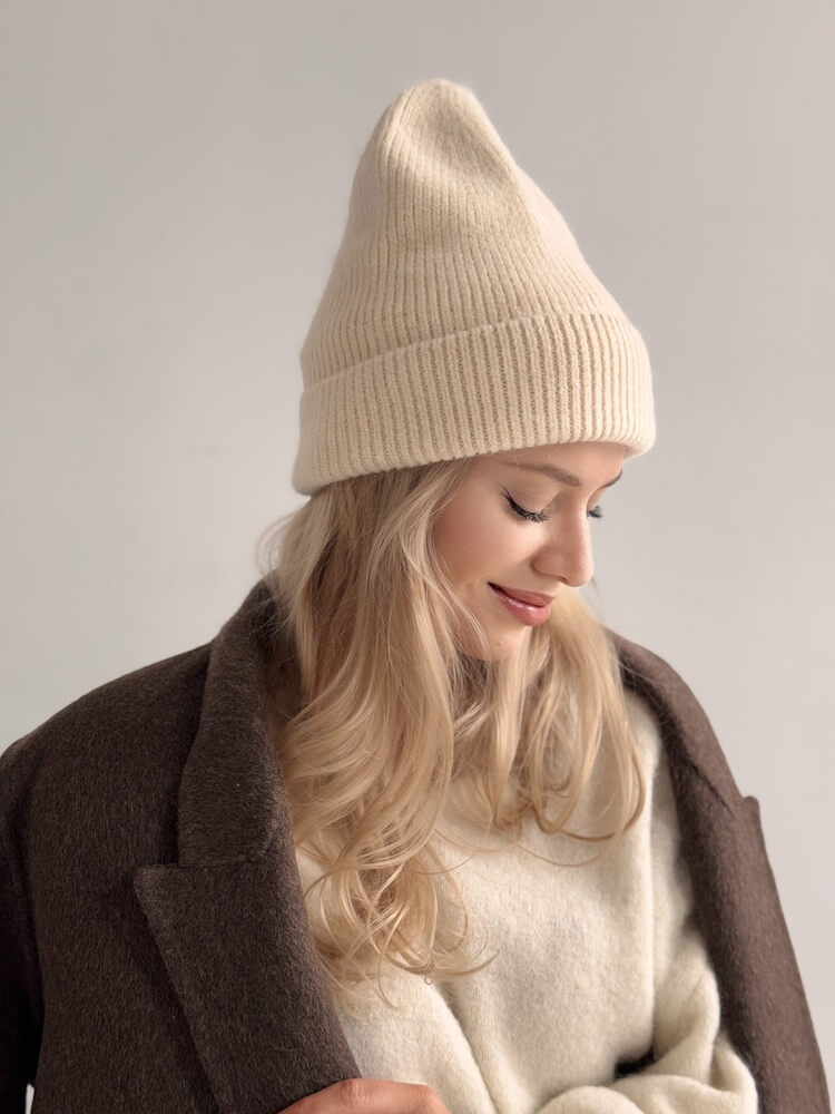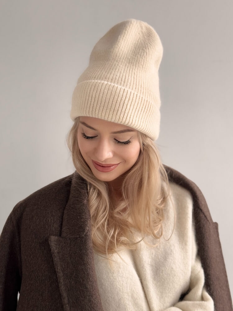 Czapka beanie z 20% domieszką angory i wiskozą. Czapka jest baardzo ciepła.