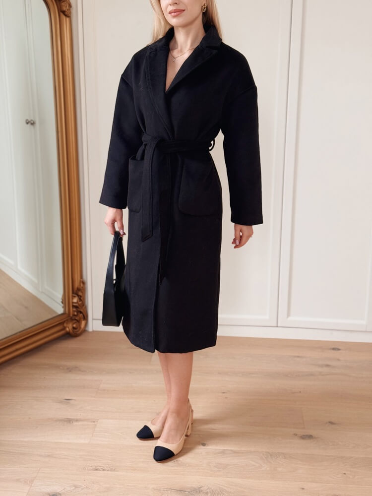 Klasyczny płaszcz z domieszką wełny – czerń