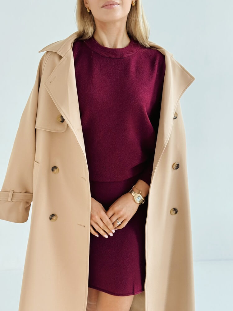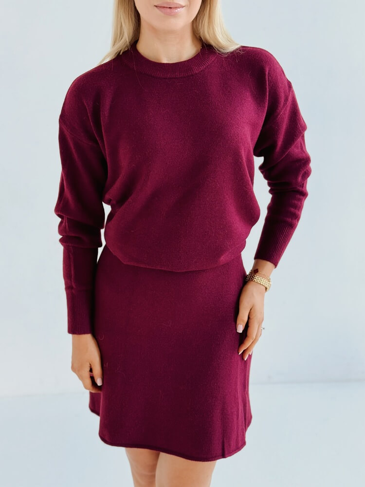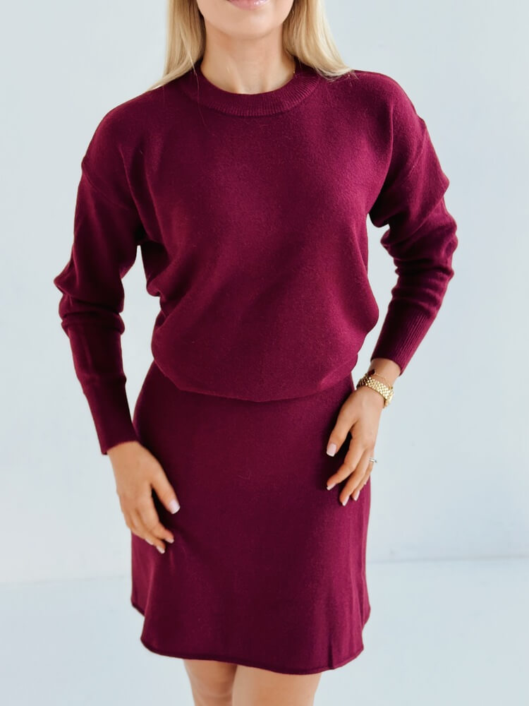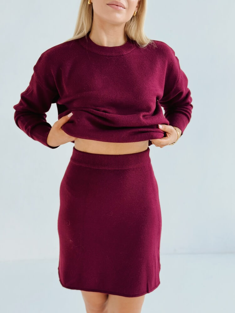 Komplet cardigan & spódniczka – burgund