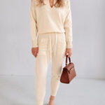Komplet wygląda luksusowo, ale nosi się jak ulubiony domowy zestaw – doskonały zarówno na spacer z kawą, podróż, jak i leniwe popołudnie na tarasie.