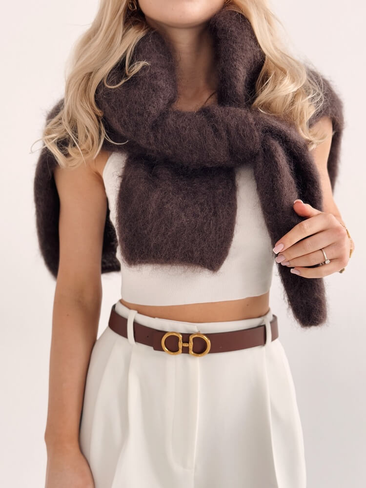 Pasek 100% skóry Bisous – brąz