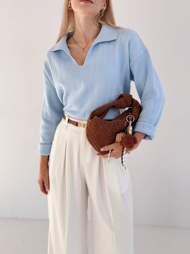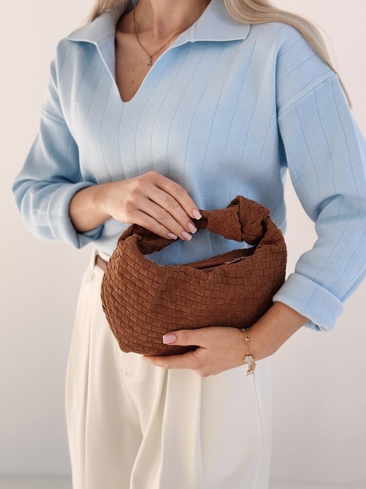 • Sprzączka paska w kolorze postarzanego złota ma kształt owalny.