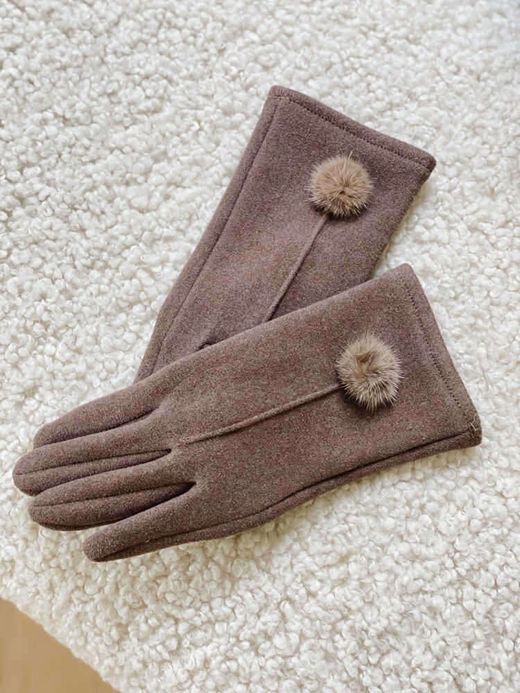 • Prześliczny kolor brązowy. Rękawiczki posiadają także uroczy, puchaty pomponik.