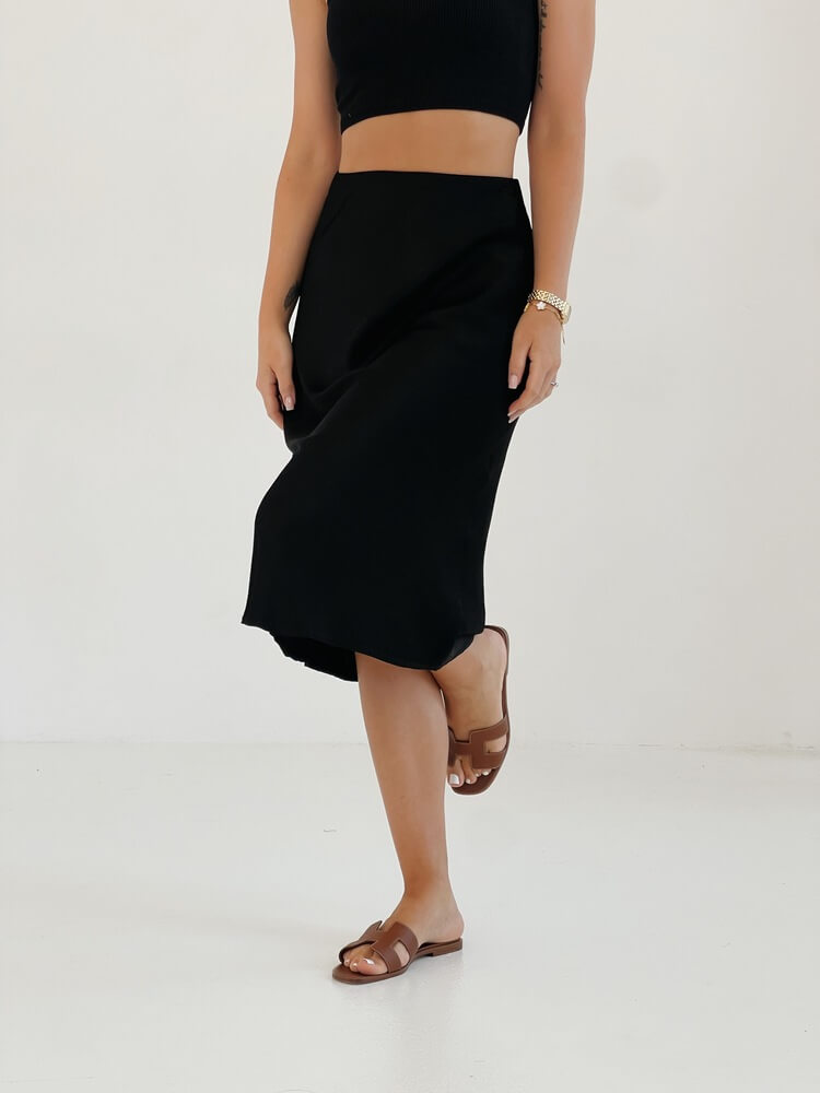 • Spódnica nie prześwituje, od wewnątrz materiał jest matowy i oddycha.