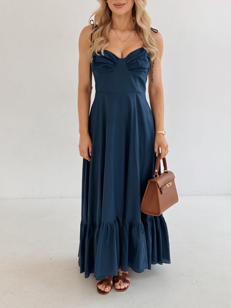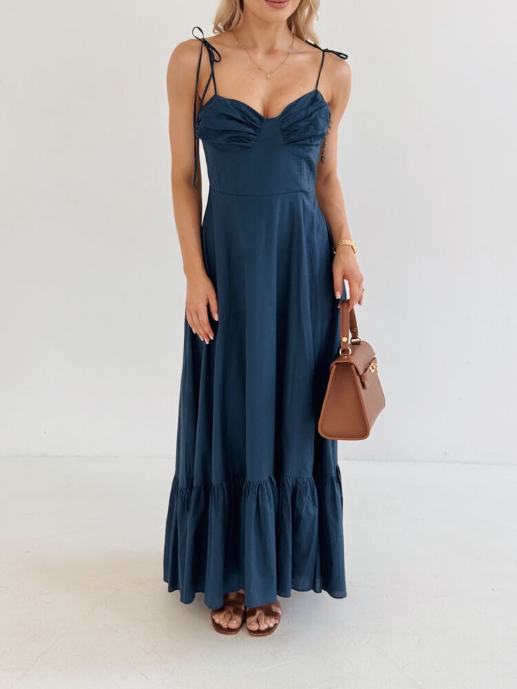 Dopasowana góra z gorsetową linią biustu i cienkimi ramiączkami do związania.