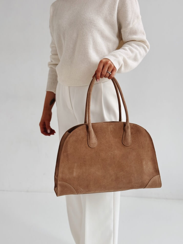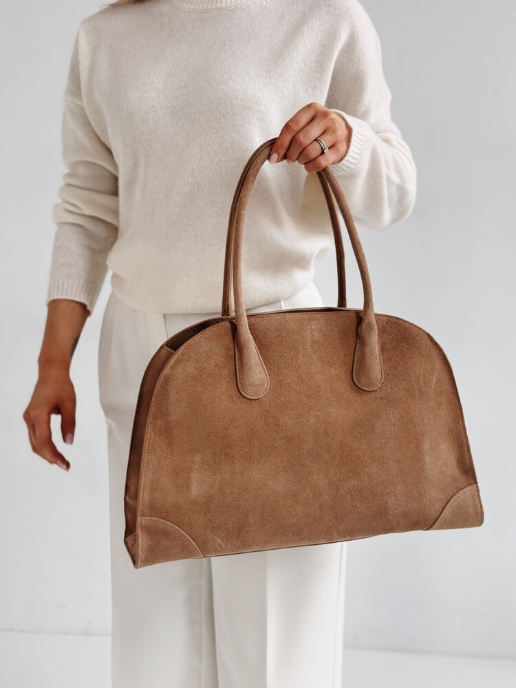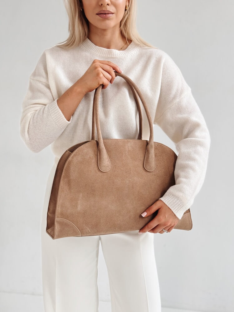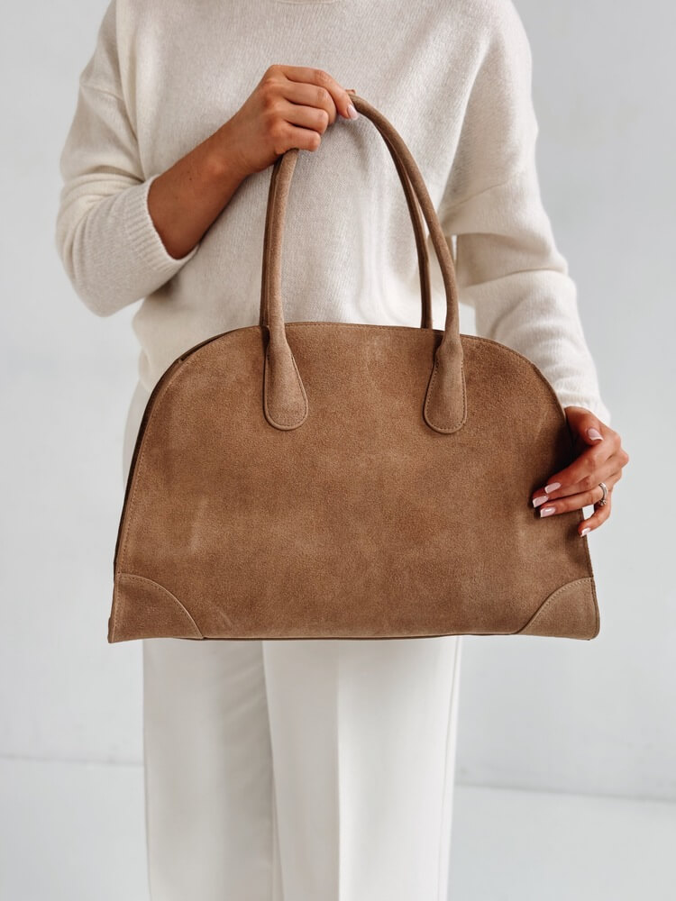 Duża torba ze sztywnymi uchwytami uszyta w 100% ze skóry (zamsz prawdziwy).