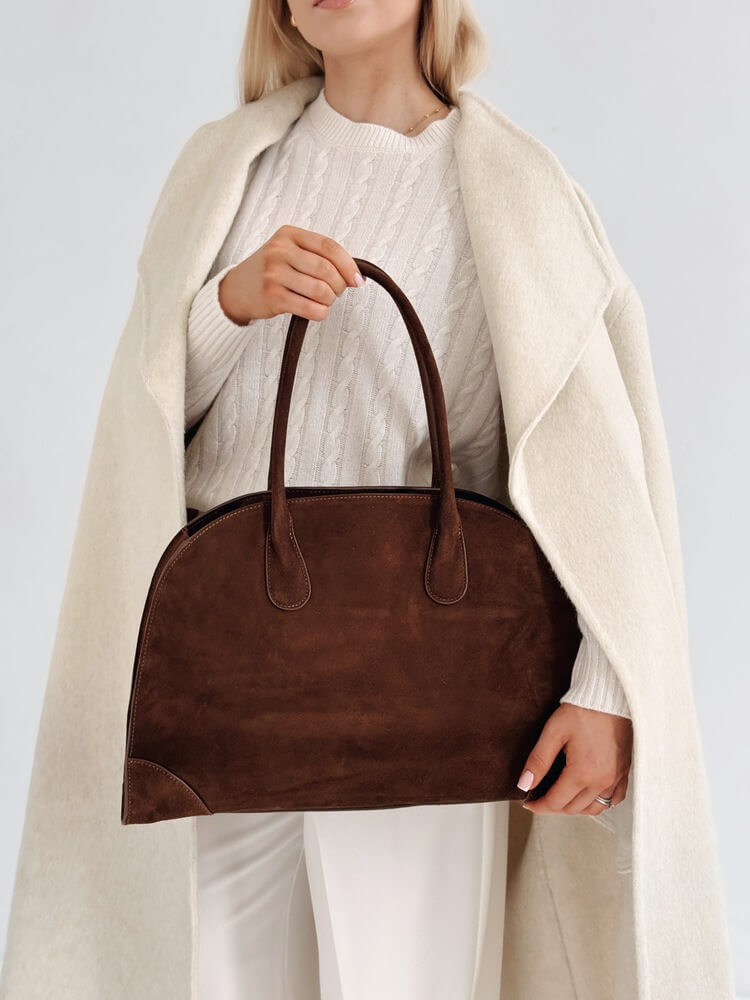 Duża torba ze sztywnymi uchwytami uszyta w 100% ze skóry (zamsz prawdziwy).