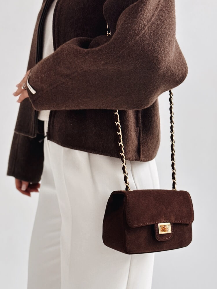 Wewnątrz torebki znajduje się kieszonka zapinana na zameczek.